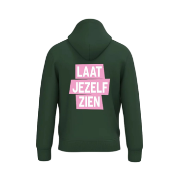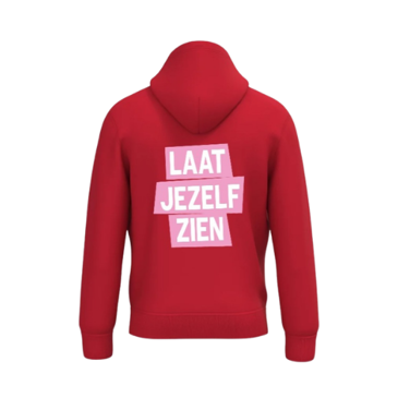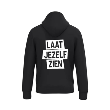 Op de borst staat ons logo en op de rug staat Laat jezelf zien. Zie foto's hieronder.