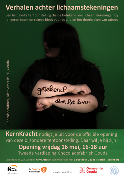 Bij de foto’s van Bram Tackenberg hebben de jongeren hun eigen verhaal opgetekend. Hierdoor ontstaat niet alleen een beeld van hun persoonlijke worstelingen maar ook van de uitdagingen van onze samenleving. Deze jongeren zijn gevormd door hun ervaringen, maar zien de toekomst vol vertrouwen tegemoet. Getekend door het leven is een tentoonstelling over veerkracht.