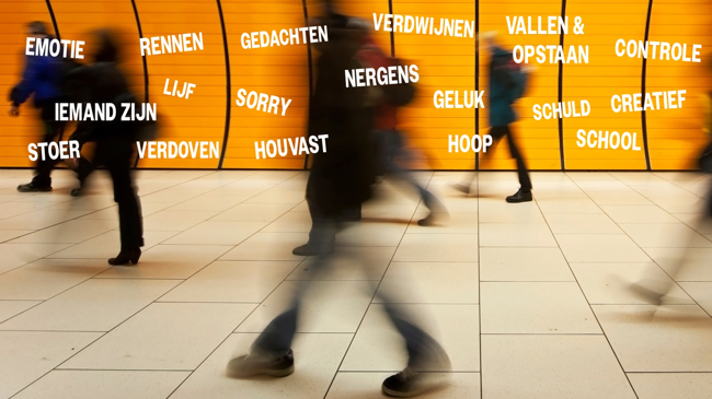 We maken krachtige beelden (borden met woorden) - over controle, over vallen en opstaan, over mogen zijn wie je bent. Hiermee maken we samen een toffe performance voor publiek voor op het Erasmusplein!